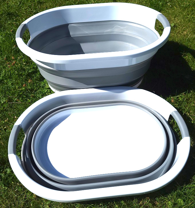 Praktisk balja i silikon som man kan fälla ihop från 22 cm till 7 cm.