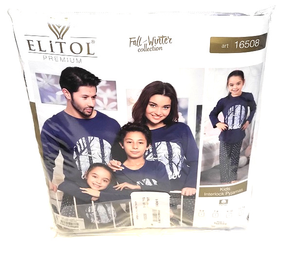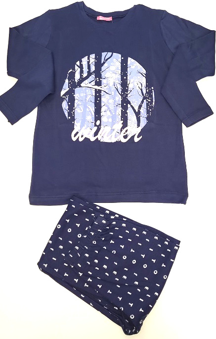 Pyjamas-tröja och byxa, blå med vintermotiv och texten winter.